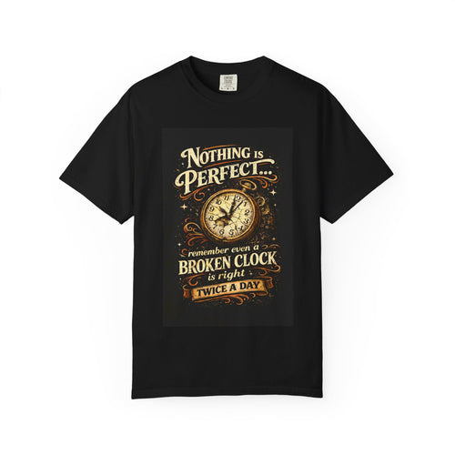 T-Shirt — "Nothing Is Perfect… Remember Even a Broken Clock Is Right Twice a Day" Vintage Clock Graphic Tee